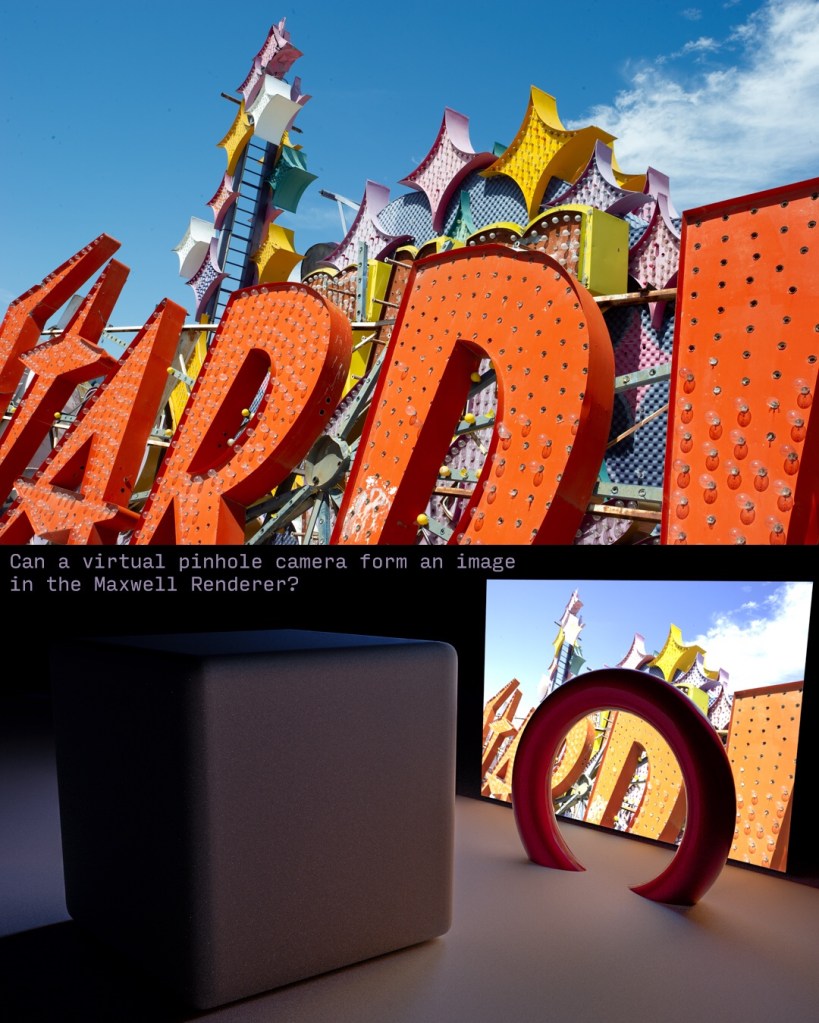 It turns out a Maxwell Renderer-simulated pinhole camera can form an image if you give it a long enough exposure time.